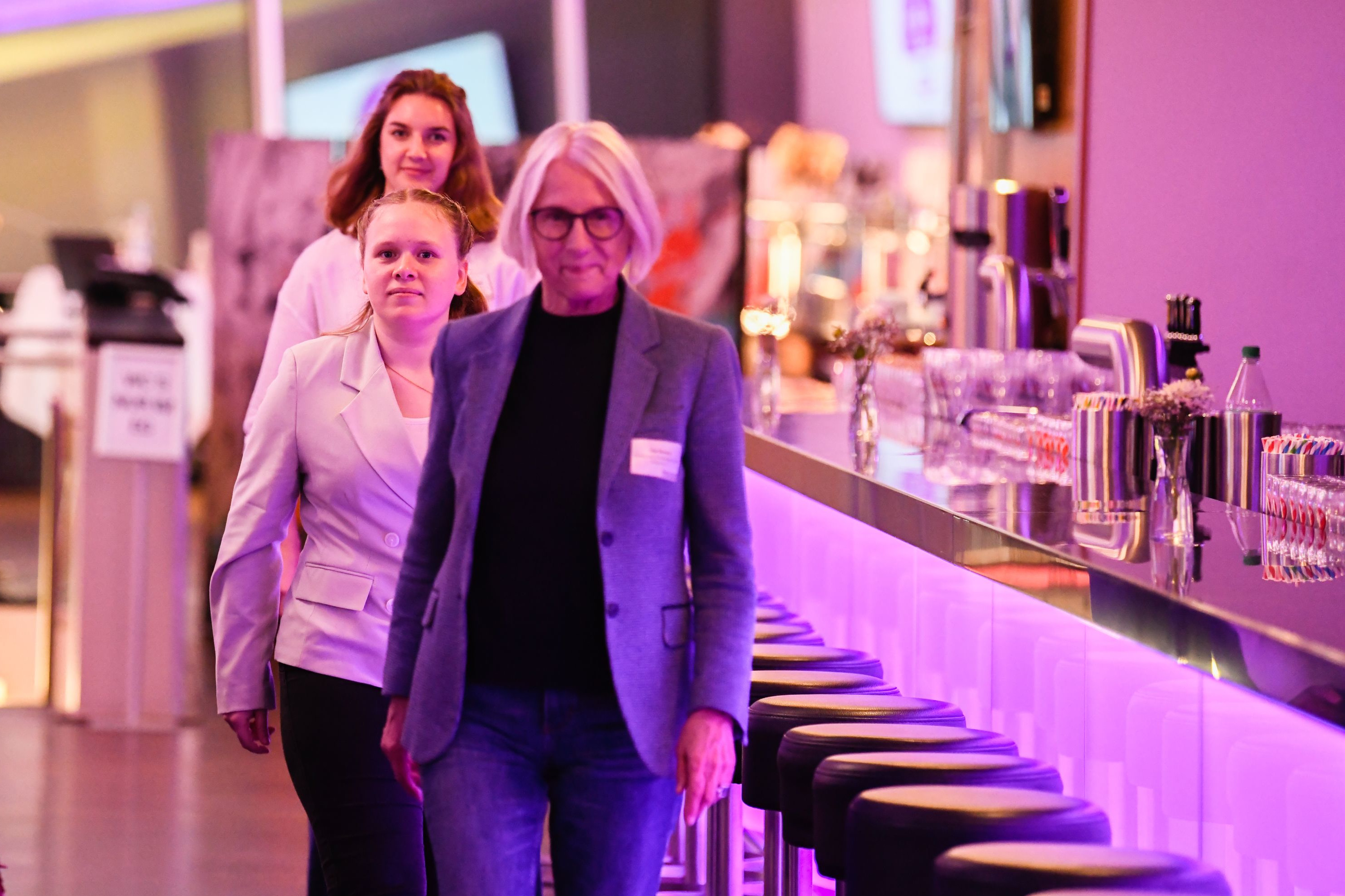 Das Photo zeigt unsere Geschäftsführerin Ute Drews mit unseren diesjährigen Stipendiatinnen Ann-Christin Kirschner und Lina Maria Mielke auf dem Weg zur Übergabe der Urkunden.
